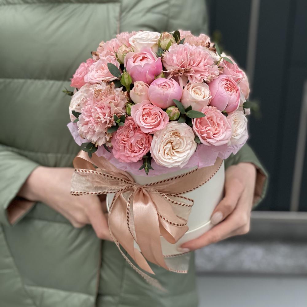 Композиция из кустовой розы, сортовой гвоздики и эвкалипта !